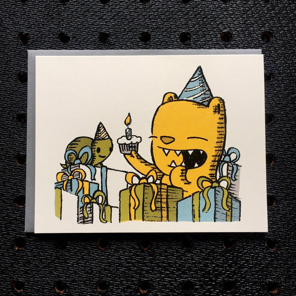 Our cards are hand printed by us and feature our hand drawn illustrations. There may be very slight variations between the item pictured and the one you receive.