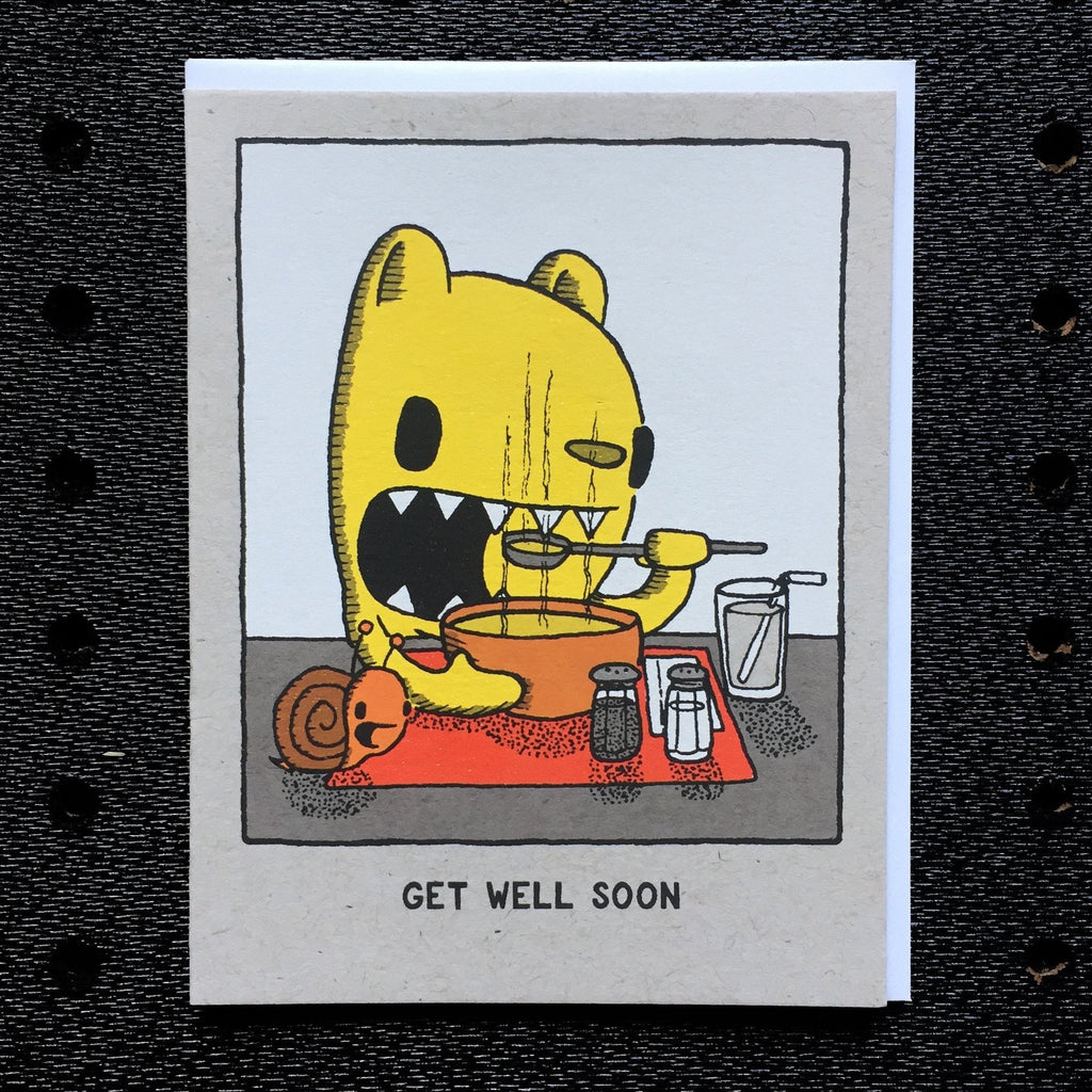All of our greeting cards are hand screen printed by us and feature our hand drawn illustrations. We mix all the inks and print them one by one in our studio. There may be very slight variations between the item pictured and the one you receive.