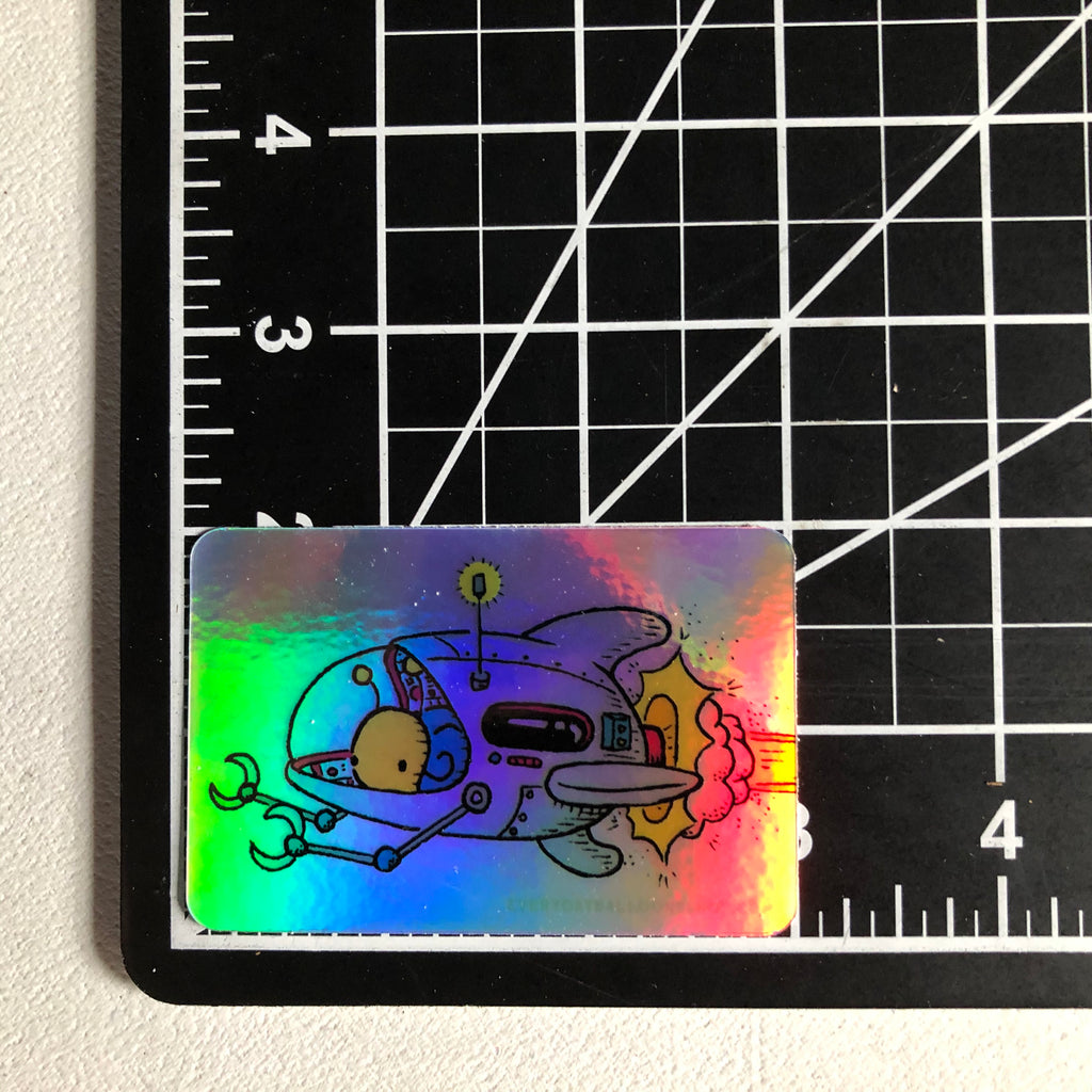 Weatherproof die-cut vinyl sticker. Measures approximately 3"x2".